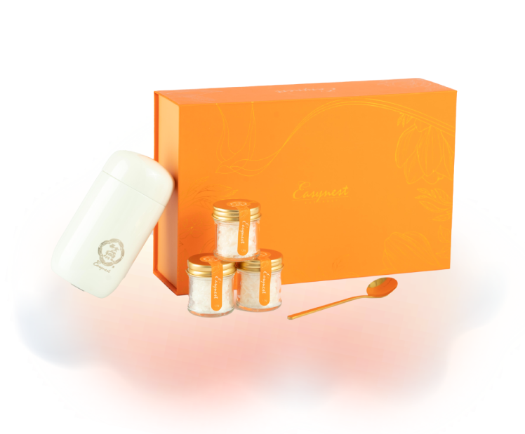 We are proud to present our Easynest, which uses our patented freeze-dried technology effectively to retain the nutritional value of Birdnest while making it easy to cook and promoting nutrient absorption. Contains 100% natural Birdnest strands without any bleaching, preservatives or stabilisers, people of all ages can safely enjoy premium quality Birdnest with the perfect aroma, taste and texture that provides the greatest satisfaction.